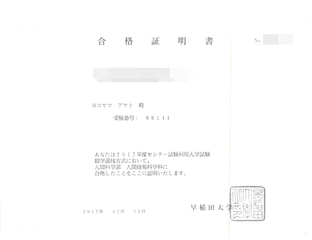 横山さんは、早稲田大学政治経済学部、人間科学部、明治大学政治経済学部にも、合格しています。合格おめでとうございます!