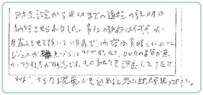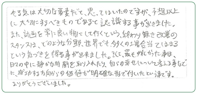 自分のやり方を見直す良い機会を与えて下さったことを感謝しています。