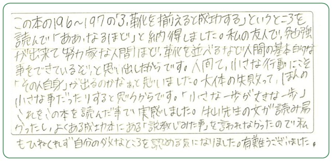 自分に合ったものを取り入れ、早速実行していきたいと思っています。