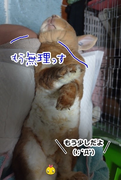仰向け抱っこはあまりしませんが、短時間でデイジー君には一番負担少ないようなのでケアする時は行います。