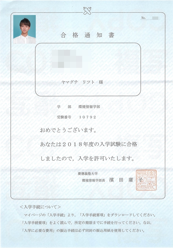合計5回(一般入試2学部とAO入試)慶應SFCに不合格になるも、あきらめずにトライし続け、合格時には一目をはばからずスタバで泣いてしまった