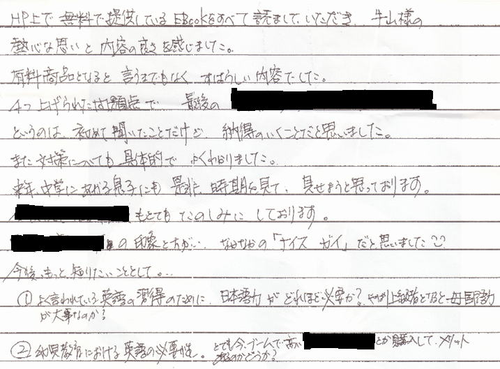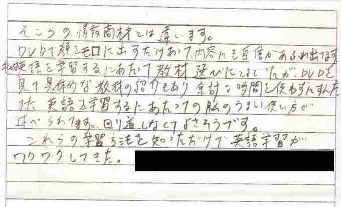 この方は速読の教材なども購入されている方ですね。以前にお手紙をくださっていたのですが、うれしい
