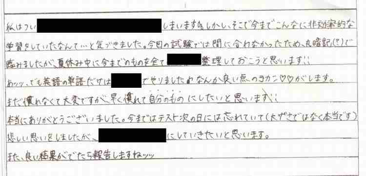 学校の小テスト(化学)でこの方法を使いパーフェクトでした(Y・O様)